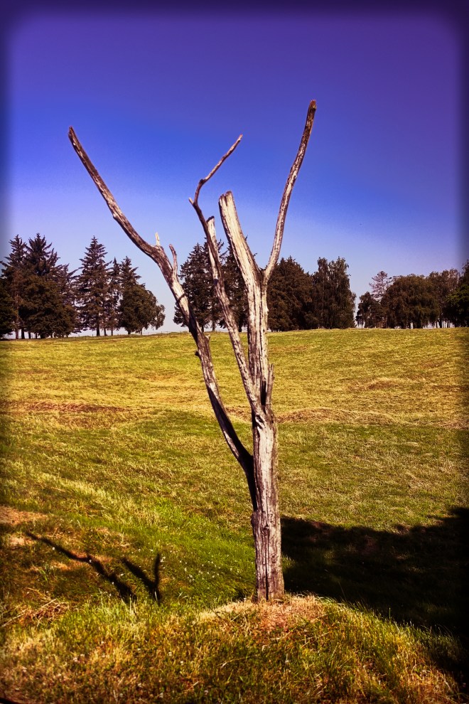 Farther down the trail we came to a gnarled and beaten piece of timber sticking out of the ground, the so-called “Danger Tree” growing from the very last piece of battlefield protected from direct fire. It was literally the only landmark that the soldiers could see clearly from the trench line on that desperately chaotic and upturned tableau. I looked at it and then, at that place, the realization struck. Right there, where my feet were planted, was the very place that any able bodied soldier took refuge from the fierce enfilade, and where the wounded crawled, if they could, to be safe from enemy fire, only to lay in the baking sun all day until darkness could cover their safe evacuation. I could feel the agony and fear soaking up through my feet and into my body. I felt the 39 degree French summer sun blazing on my back and face, and realized that I had been out in it for all of 20 minutes. What if I was bleeding to death and expecting not to be attended to until near midnight? What if I was 16 years old? This made me shudder, made me cold in the baking direct heat. Hundreds of men & boys had suffered and died, piled up like cord-wood, precisely where I stood.